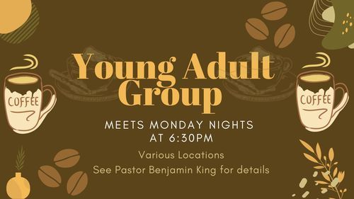 This is a time for Young Adults (after highschool age) to fellowship, deepen relationships, and study God's Word and other relevant topics. Pastor Benjamin King leads the Young Adult Group on Monday nights.
