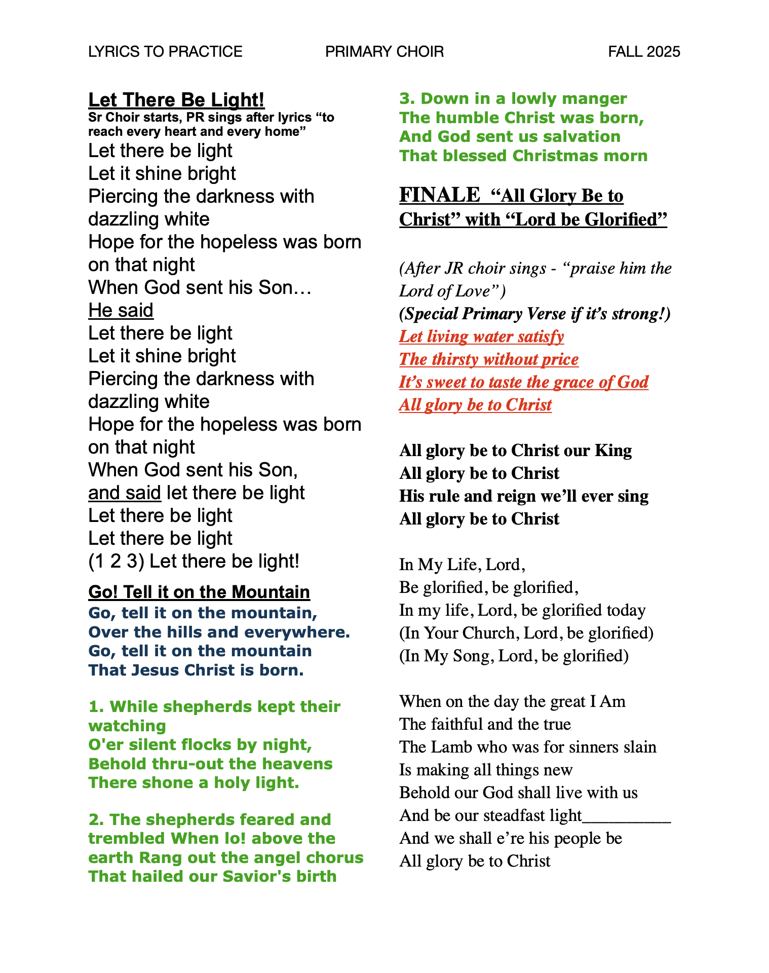 LYRIC SHEET (Let there be Light), Go Tell it on the Mountain, and Finale